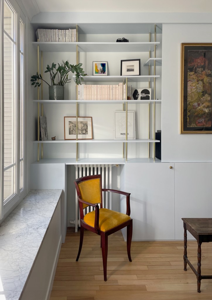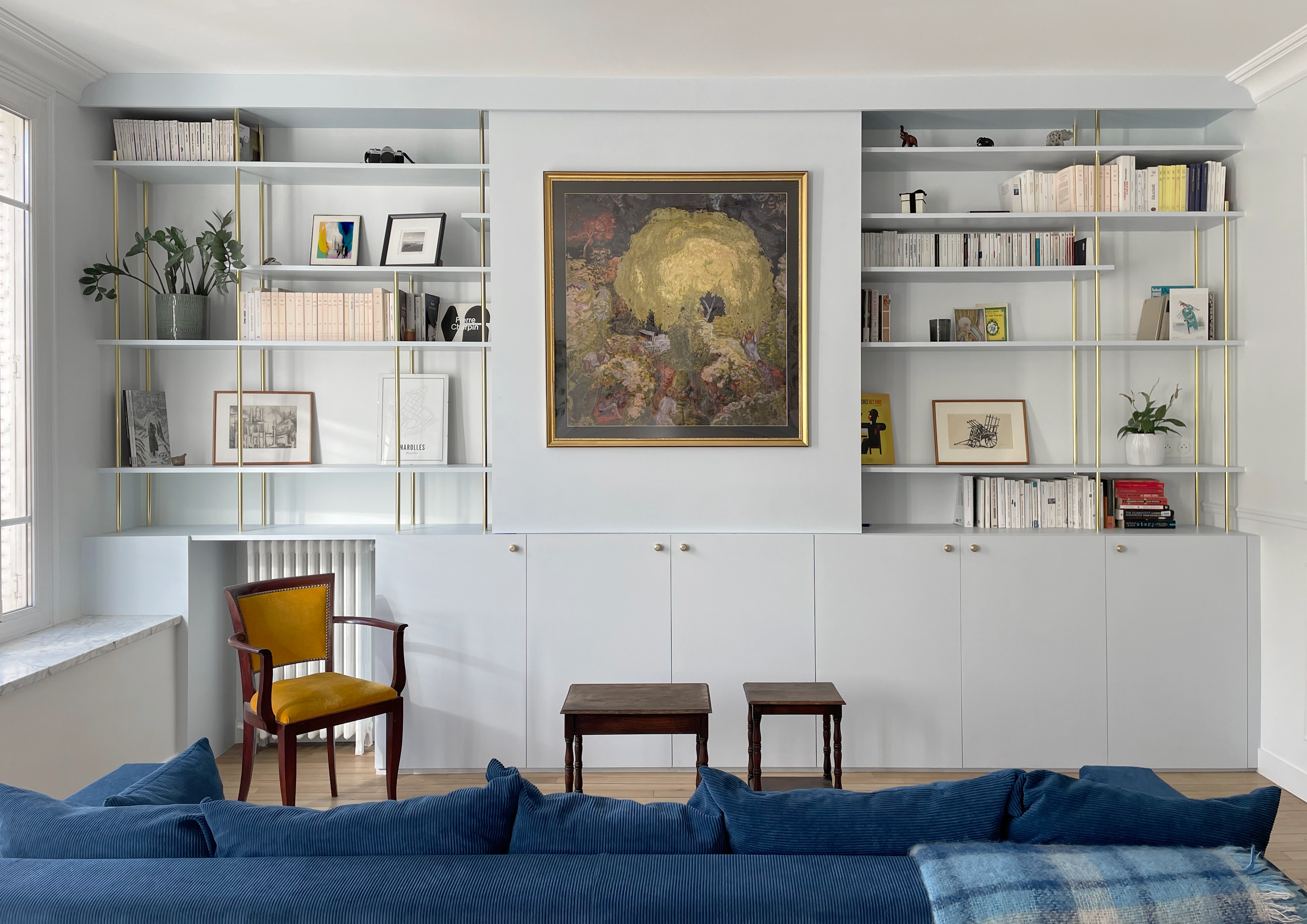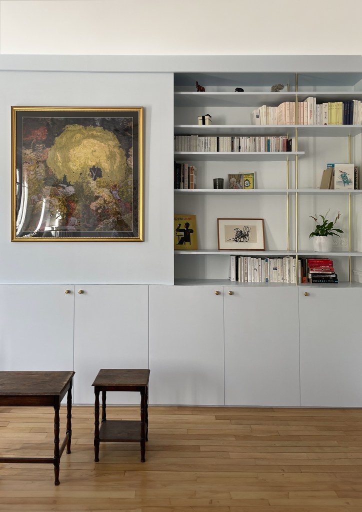 Nous sommes ainsi partis à la recherche d’une atmosphère à la fois bucolique et Art déco, tout en nuances de bleu et qui ferait la part belle aux objets d’époque, soigneusement chinés.
