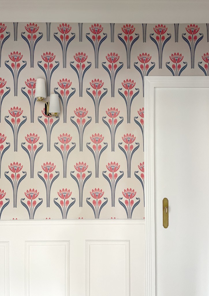 Pour ce faire, nous avons complètement retravaillé l’esthétique des murs et des plafonds par l’ajout de moulures et corniches décoratives et par l’application de papiers-peints aux thèmes floraux.