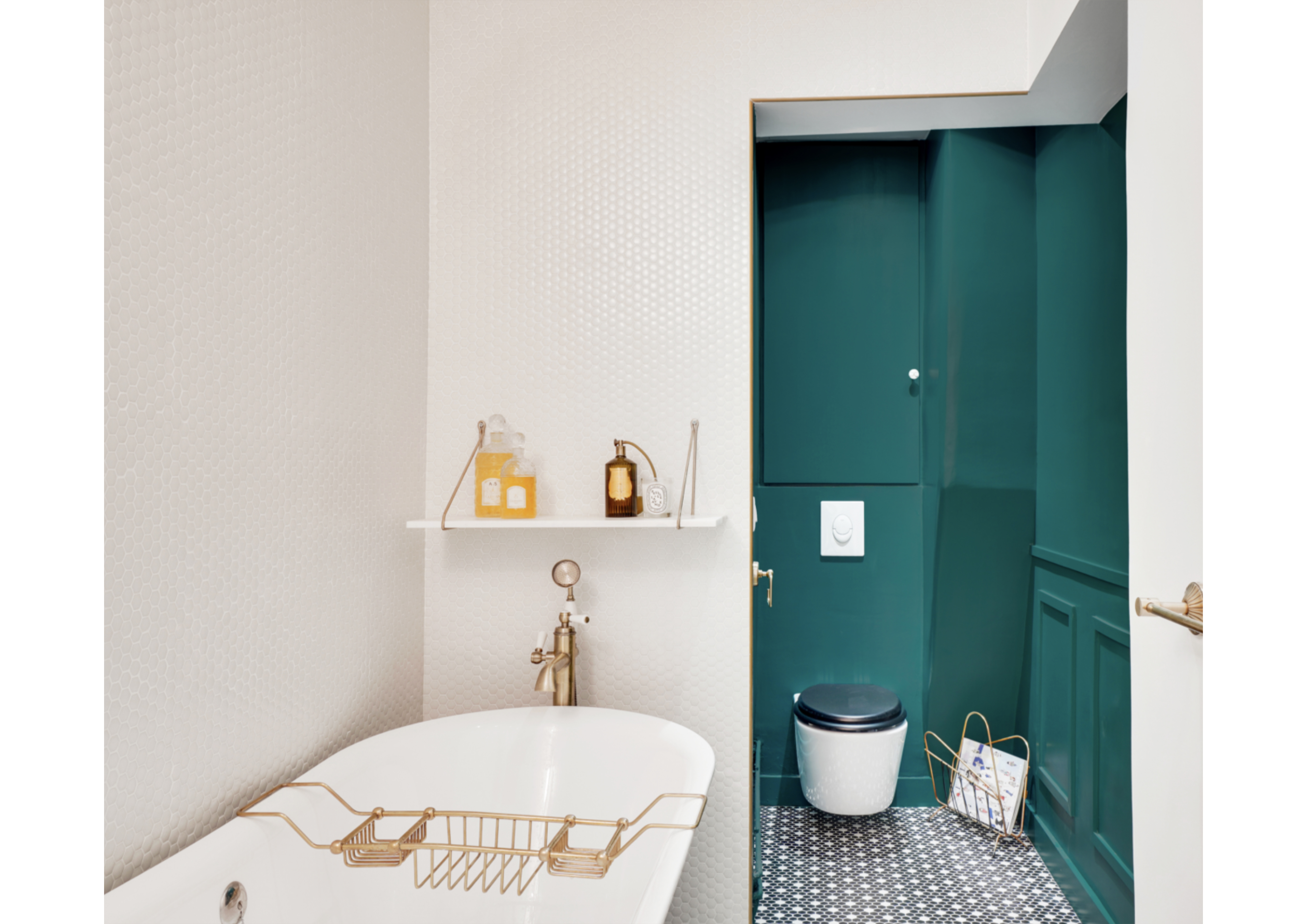 Descriptif : Étude décorative complète. Création d’une salle de bain dans un style Art Déco.