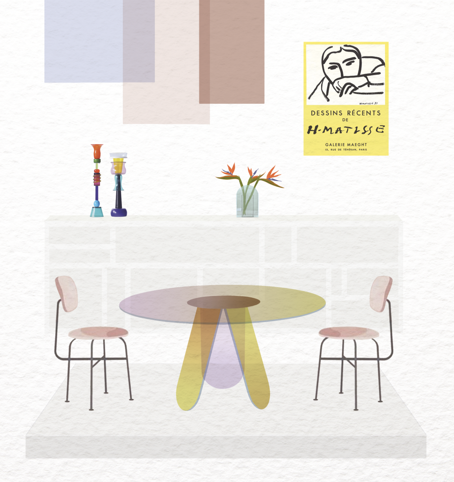 Nous vous présentons sous forme de scénographies notre univers ainsi que les artistes et designers qui nous inspirent au quotidien. Nos coups de cœur décoratifs et artistiques y sont mis en scène pour créer des ambiances à notre image, axées sur les formes, les couleurs et l’Art.